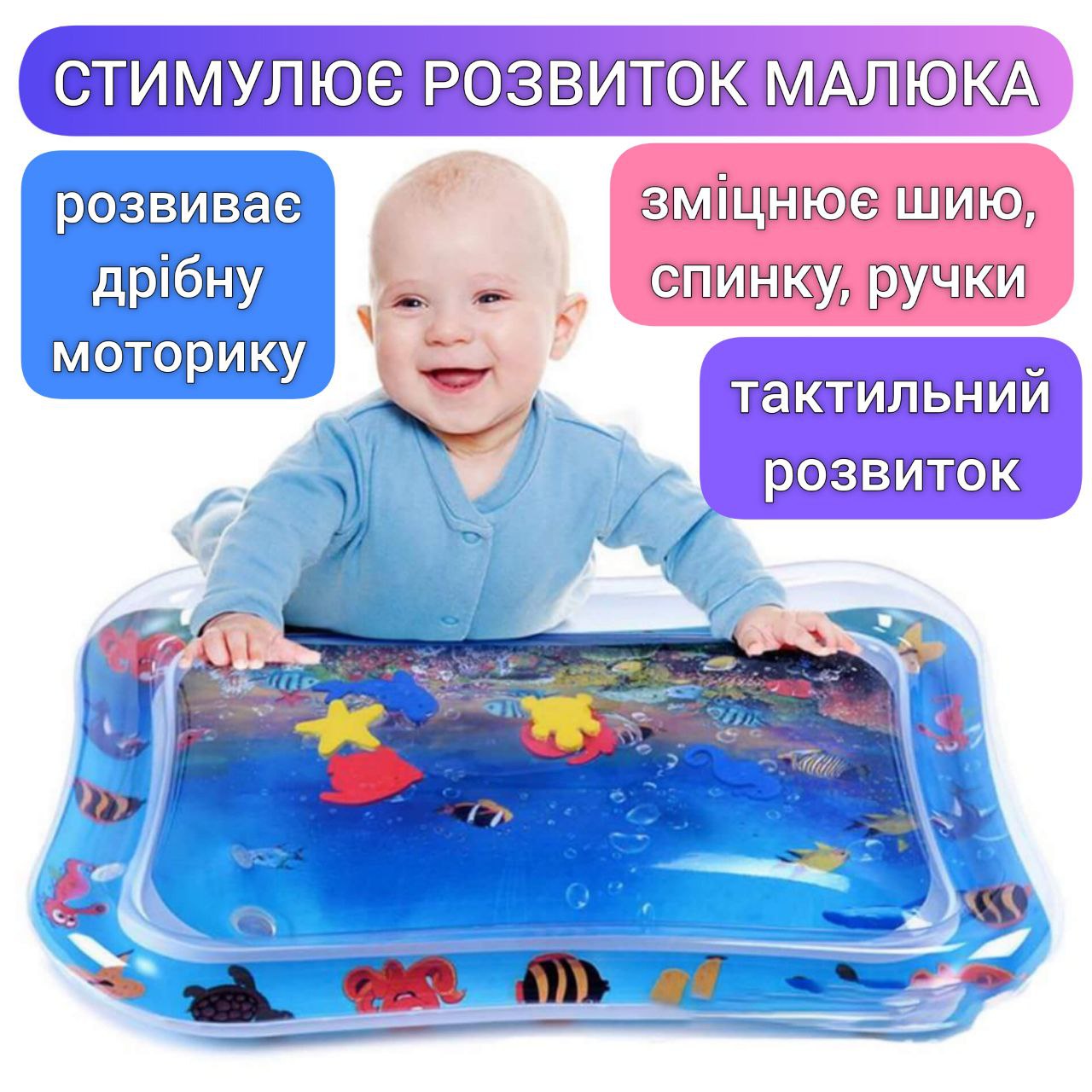 Aquaboard розроблений для розвитку у дітей від 3-х місяців сенсорних здібностей, моторики рук, зміцнення м'язів спинки та шиї.